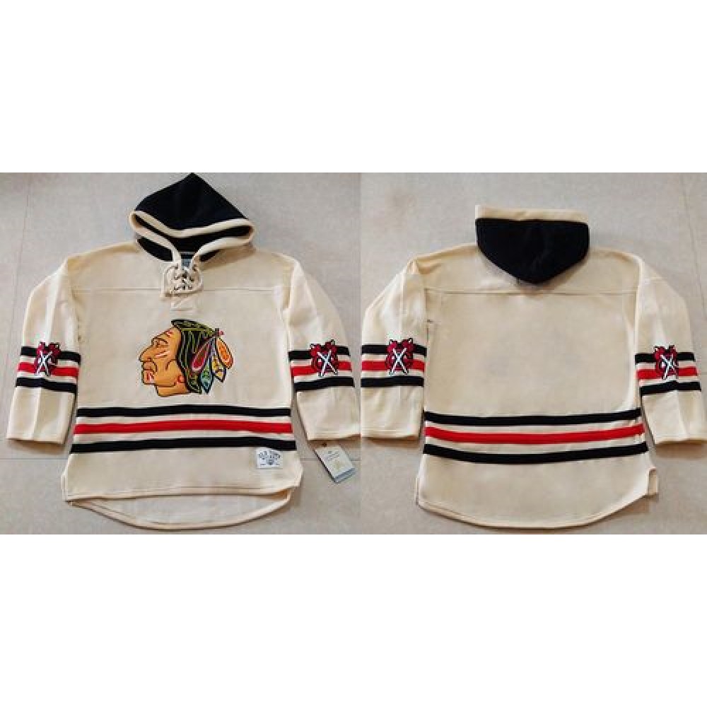 Blackhawks Blank Cream Heavyweight Pullover Hoodie Stitched NHL Jersey
